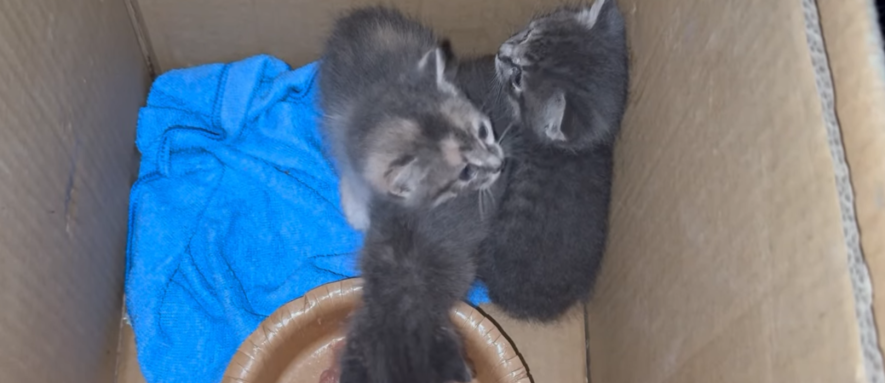 Для забезпечення безпеки кошенят рятувальники помістили їх у коробку, щоб вони не загубилися. Наразі малюки перебувають під наглядом служби порятунку та потребують нових господарів: