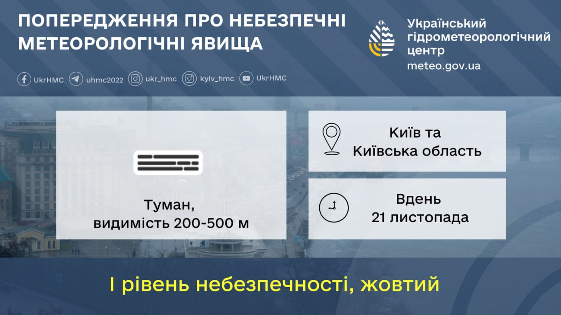 Жовтий рівень небезпечності показує, що погодні умови можуть істотно вплинути на повсякденне життя мешканців. В умовах вже складної транспортної ситуації в столиці, туман може призвести до заторів та підвищити ризик аварій, тому водіям і пішоходам слід бути максимально уважними 21 листопада.