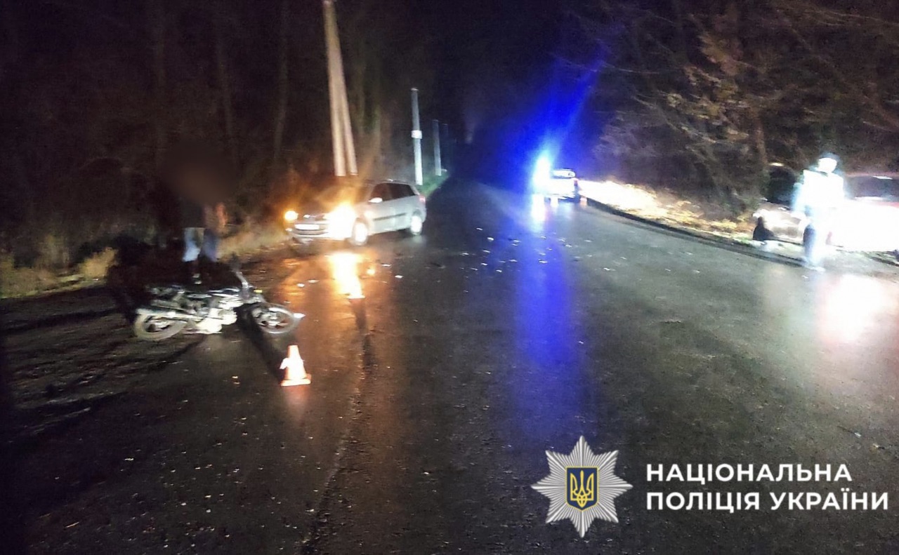 Вчора, 20 листопада, близько 19:50 у селі Жуківці Обухівського району водійка автомобіля Toyota Corolla виїжджала на головну дорогу та зіткнулася з мотоциклом Musstang, яким керував 17-річний юнак.