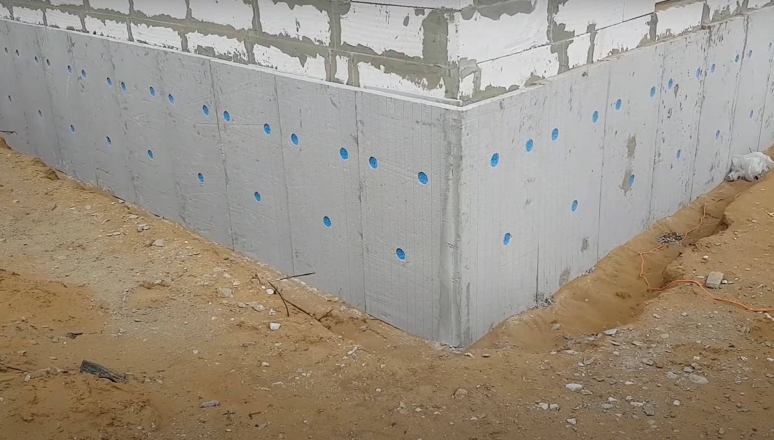 Материалы для подземной части должны быть невосприимчивы к влаге и обладать высокой прочностью на сжатие. Минеральная вата для этих условий не годится — она впитывает воду и теряет свойства. Лучший выбор для наружной изоляции фундамента — экструдированный пенополистирол (ЭППС). Его закрытоячеистая структура практически не впитывает влагу, а высокая прочность выдерживает давление грунта.