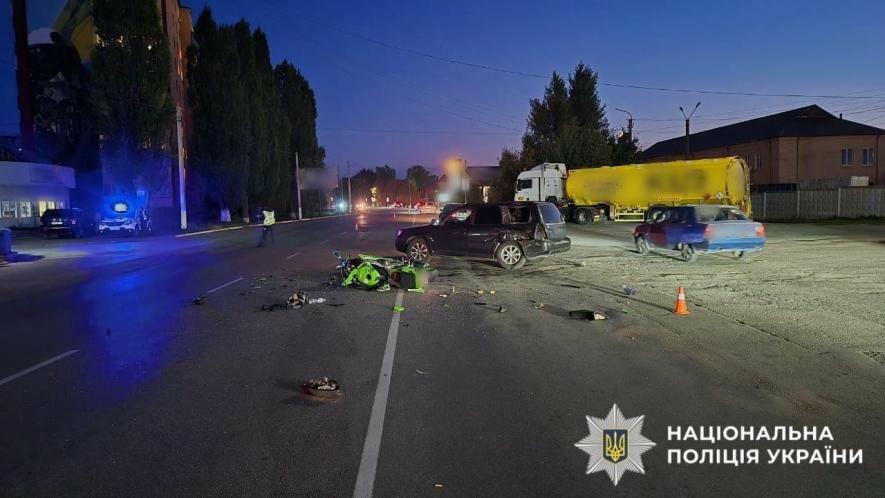 «Унаслідок ДТП 34-річного водія мототранспорту з тілесними ушкодженнями було госпіталізовано», — зазначено в повідомленні поліції.