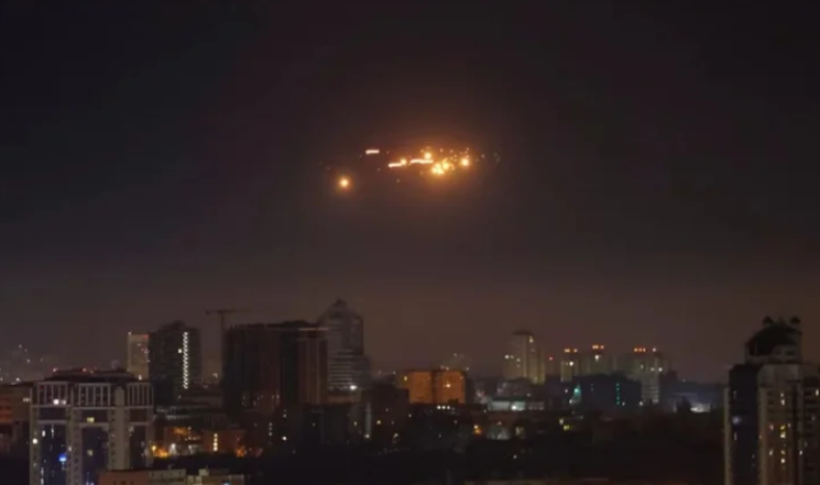 Після опівночі в Києві та околицях було чути сильні звуки — працювала ППО та сирени. Ворожі літальні апарати декілька разів атакували повітряний простір. За словами Віталія Кличка, деякі з них потрапили в місто, що призвело до виникнення пожежі.