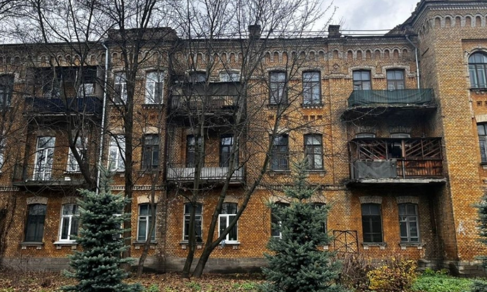 За результатами технічних обстежень встановлено, що будівля перебуває в незадовільному та частково аварійному стані: на фасадах зафіксовано тріщини та пошкодження цегляної кладки, на даху проросла рослинність і пошкоджені водостічні системи; у внутрішніх приміщеннях виявлено тріщини стін і стелі, ознаки замокання, наявність грибка та плісняви, пошкодження підлогового покриття та сліди займання.