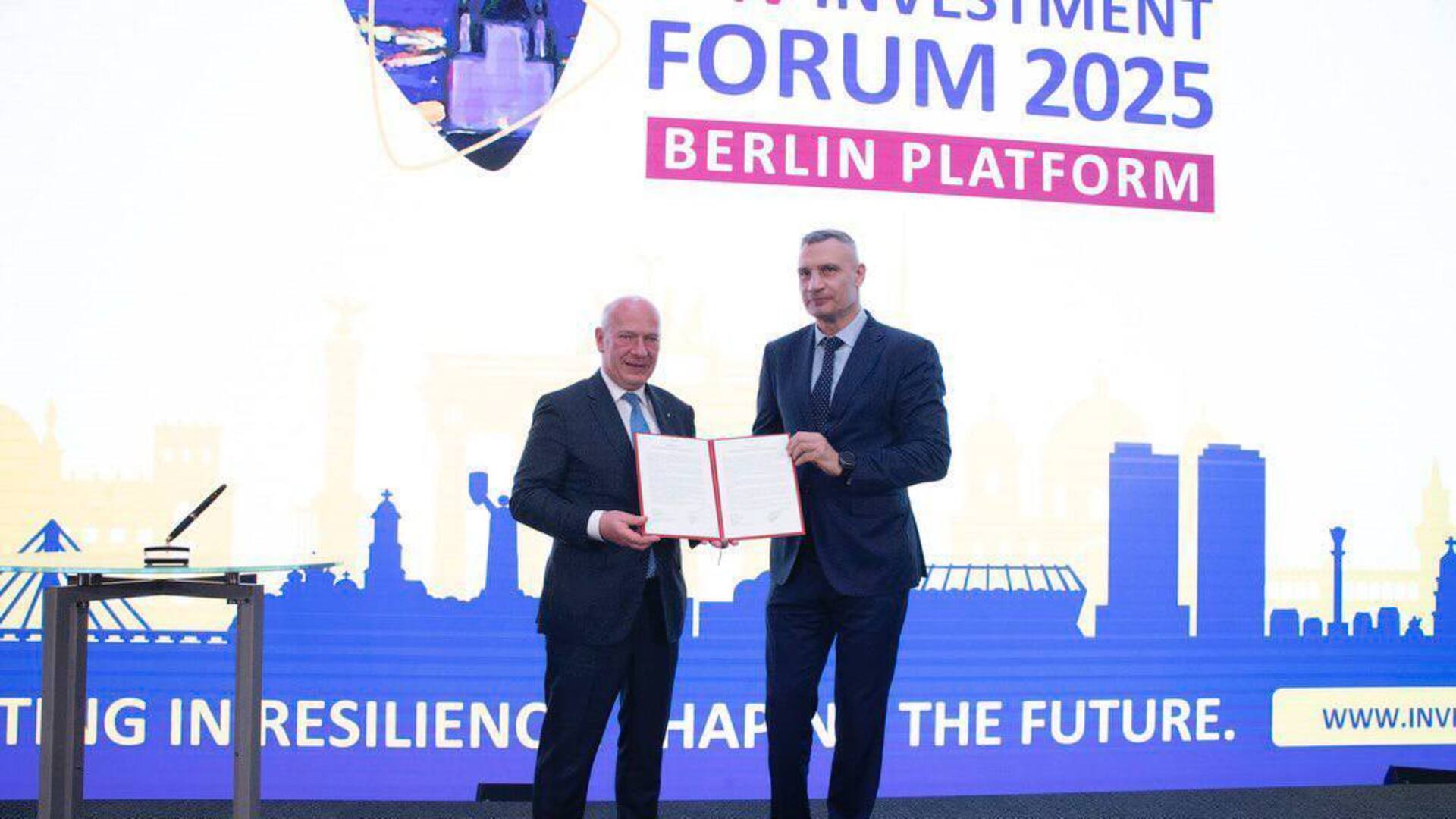 Мер Києва Віталій Кличко та мер Берліна Кай Вегнер підписали меморандум, що передбачає спільні зусилля для відновлення прямого залізничного сполучення між двома столицями. Цей документ був підписаний під час Інвестиційного форуму міста Києва, який проходив у Берліні, організованому меріями обох міст. Про це повідомив Кличко на своєму телеграм-каналі.