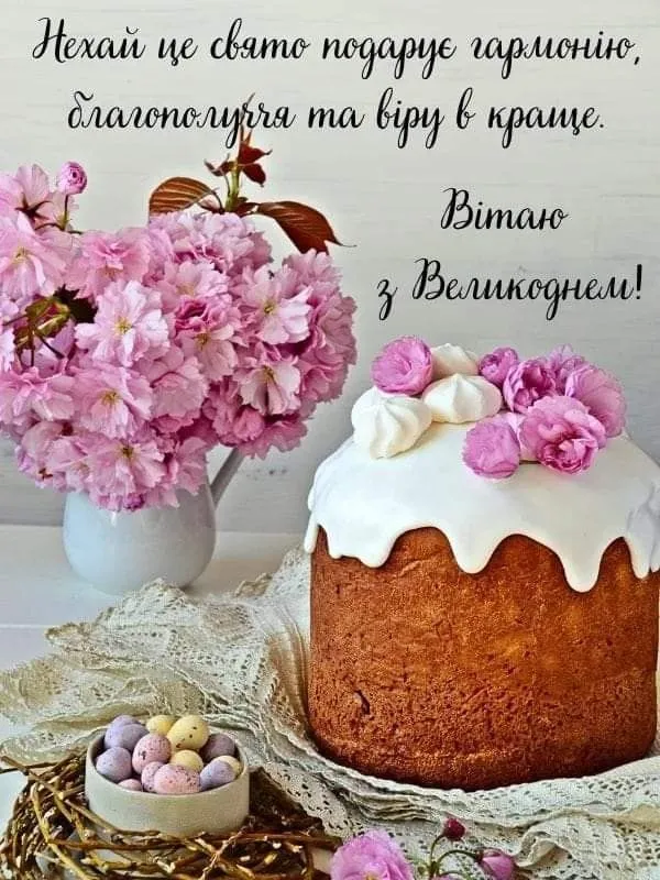 Вітаю з Великоднем! Бажаю, щоб у твоєму житті завжди вистачало теплих слів, щирих обіймів і тихих вечорів у колі найдорожчих людей. Нехай Великдень подарує впевненість у тому, що все найкраще — попереду.