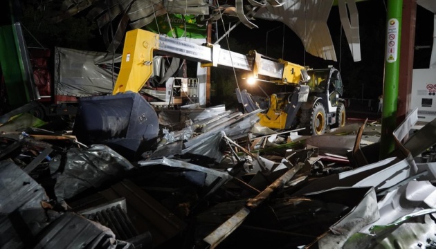 За повідомленням Державної служби з надзвичайних ситуацій (ДСНС), «внаслідок удару виникла пожежа й зруйнування будівлі. Постраждали четверо людей: троє водіїв і касир. Пошкоджено автомобілі, будівлю, а також обладнання станції».