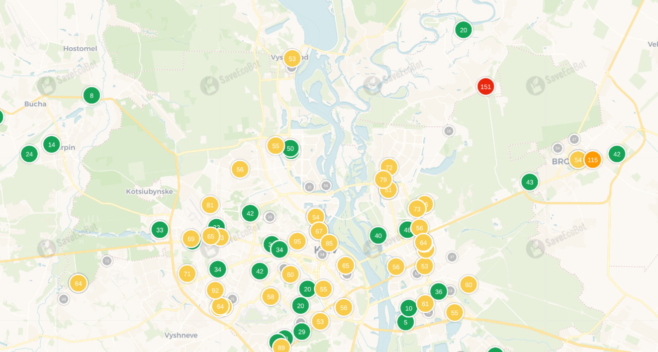 Сьогодні, 24 жовтня, на території Київської області спостерігається погіршення якості повітря. Інформацію підтверджує сервіс моніторингу saveecobot.
