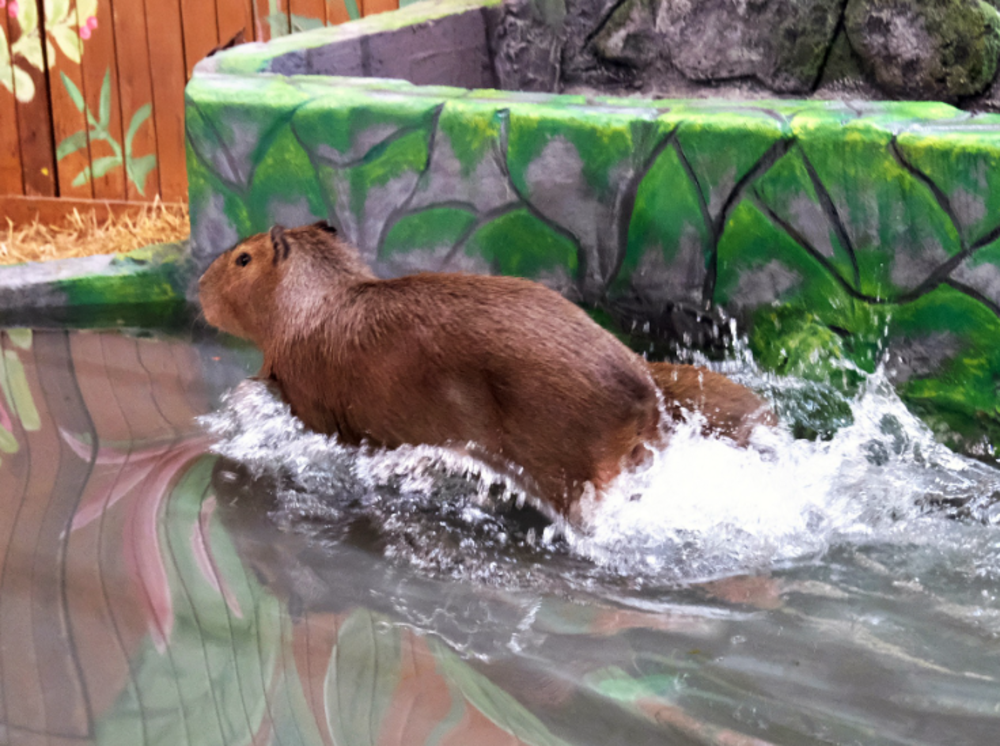 Капібар можна побачити у будиночку, розташованому між Островом звірів та Слоновником.