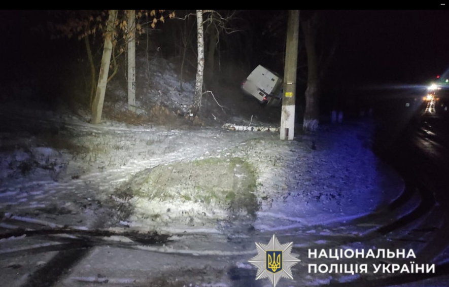 На місці події поліцейські встановили, що транспортний засіб застряг на узбіччі посеред дерев. За попередніми даними, 37-річний водій Ford Transit не впорався з керуванням, виїхав за межі проїжджої частини та зіткнувся з деревом.