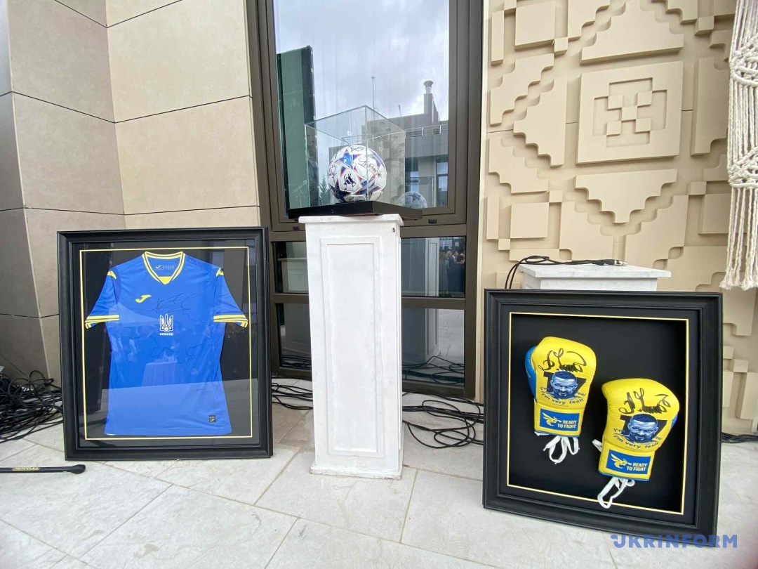 На благодійному аукціоні були представлені унікальні лоти: боксерські рукавиці з автографом Олександра Усика, футболка національної збірної України з підписом Андрія Шевченка, а також футбольний м’яч із автограмами тренера клубу «Шахтар» Арди Турана та гравців команди. Зібрані кошти будуть передані на благодійність через платформу UNITED24.