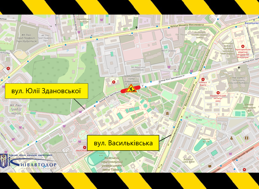 “9 та 10 жовтня частково обмежуватимуть рух вулицею Юлії Здановської в Голосіївському районі столиці з 8:00 до 18:00”, – зазначає КМДА.