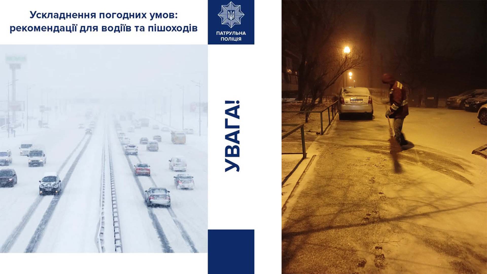 «Бережіть себе, одягайтесь тепліше та дотримуйтеся правил дорожнього руху», — закликає Патрульна поліція України.