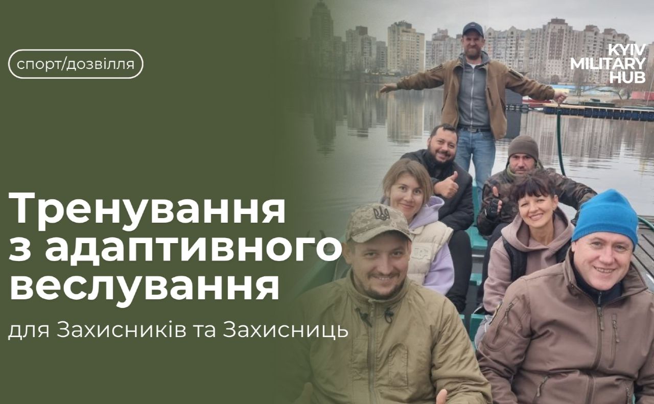 Київ Мілітарі Хаб у співпраці з Федерацією морських багатоборств України запрошує Захисників та Захисниць відвідати тренування з адаптивного веслування.
