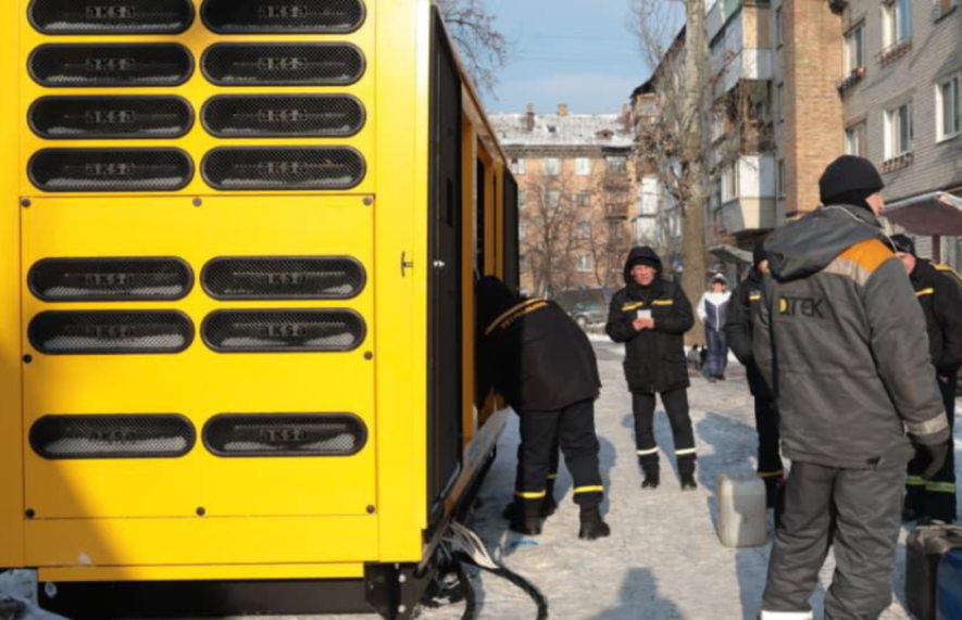 Поруч із столичними багатоповерхівками, де тривають роботи з відновлення мереж, розміщують додаткові генератори. Рятувальники встановлюють їх, щоб забезпечити стабільне живлення для будинків: