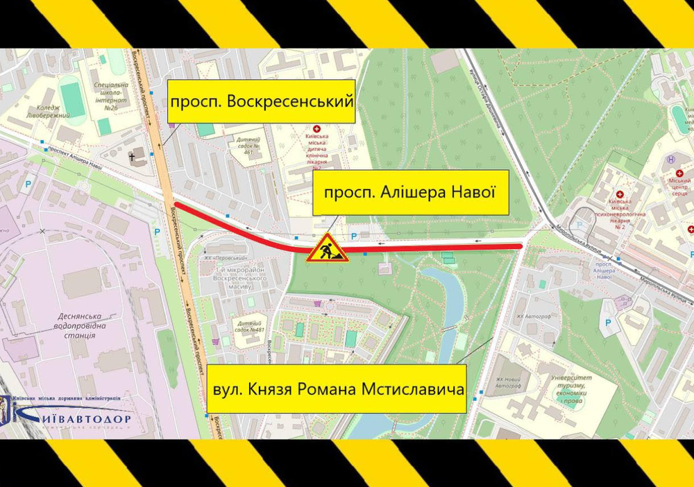 “12 та 13 жовтня, з 8:00 до 20:00, буде частково обмежено рух просп. Алішера Навої у Дніпровському районі столиці. Про це повідомляють у КК «Київавтодор»”, – зазначає КМДА.